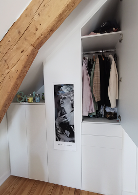 Nos dressings sur mesure sont pensés selon vos habitudes, vos besoins de rangement et la configuration de votre espace. Penderies, tiroirs, accessoires et éclairage sont intégrés avec précision, y compris dans les espaces complexes comme les sous-pentes ou les niches. L’agencement intérieur devient alors un véritable outil d’organisation et de confort.